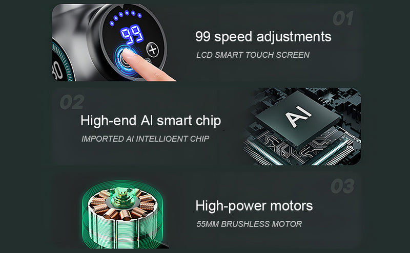 - Equipped with a 25W high-torque motor delivering 19800 percussions per minute.